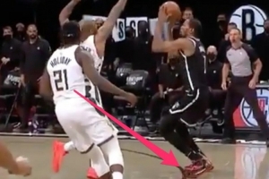 末节最后时刻,篮网以107-109落后,杜兰特接球转身起跳面对PJ-塔克防守出手远投命中,但他的脚踩到了三分线,因此这一球被算作两分球,比赛进入加时。加时赛,篮网仅得2分最终输球。