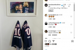 伊布社媒晒出他在巴黎照片,他怀中的两个孩子身穿的球衣分别带有“王者”、“传奇”的字样,伊布配文:“我来时如王者,去时成传奇。”