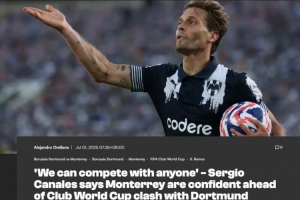 体育资讯7月1日讯 北京时间7月2日09:00,世俱杯1/8决赛多特蒙德将对阵墨西哥球队蒙特雷。赛前,蒙特雷老将卡纳莱斯接受了采访。