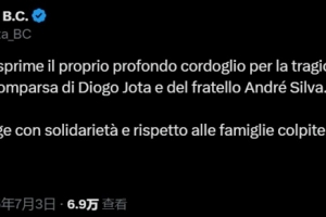 亚特兰大官方写道:“亚特兰大俱乐部对迪奥戈-若塔和他的弟弟安德烈-席尔瓦的突然离世表示深切哀悼。”