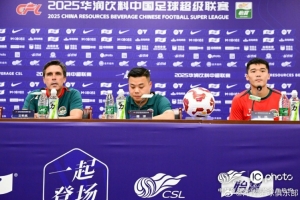 8月2日19:35,2025华润饮料中超联赛第十九轮,河南俱乐部酒祖杜康将在客场对阵青岛西海岸,河南俱乐部酒祖杜康主教练拉莫斯携球员钟义浩出席赛前新闻发布会。