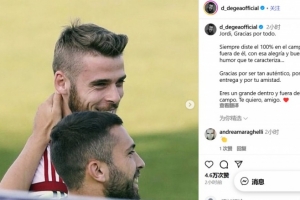 体育资讯10月8日讯 不久前,德赫亚更新了社交媒体,致敬宣布本赛季结束后退役的阿尔巴,两人曾经是西班牙国家队的队友。