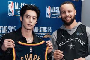 体育资讯02月16日讯 勇士官推晒图,库里和中国明星王鹤棣交换礼物。