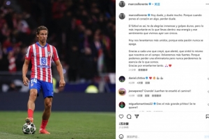 体育资讯3月14日讯 马竞在本轮欧冠主场被皇马点球淘汰,出自皇马青训的马科斯-略伦特罚丢点球,他也在今日通过社媒发文。