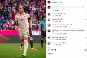 凯恩也通过社媒晒出自己进球后的庆祝照,并配文:“今天拿下一场重要的胜利,在安联主场全取关键三分。”