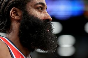 本场比赛,哈登出战35分钟,18中7,三分12中4,罚球6中6,砍下24分8板8助1盖帽,出现5次失误,正负值-17则是全场最低。
