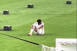 赛后有球迷拍到琼阿梅尼一个人坐在球场内,有些沮丧。