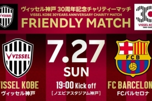 体育资讯5月12日讯 神户胜利船官方宣布,为纪念俱乐部成立30周年,球队将于7月27日18点(北京时间)与巴萨进行友谊赛。比赛地点为御崎公园球场。