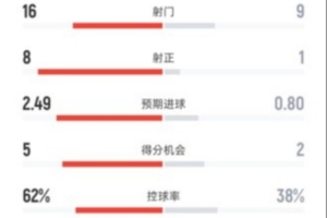 控球率62%-38%