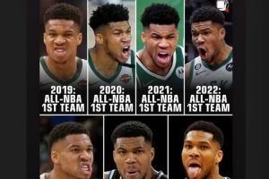 据统计,字母哥已经连续7年入选最佳一阵,他自己本人也在INS转发庆祝。