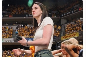 WNBA印第安纳狂热明星凯特琳-克拉克来到现场看球。