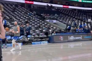 下一篇: 老詹昨日在通道打趣东契奇:生日快乐东子,你快跟我一样老了