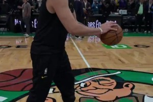 下一篇: 能变常规武器吗?詹姆斯&东契奇赛前热身练习logo三分