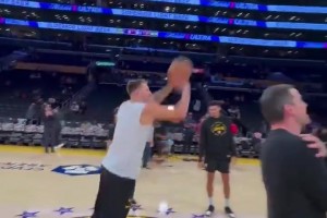 湖人vs掘金詹姆斯摊手视频